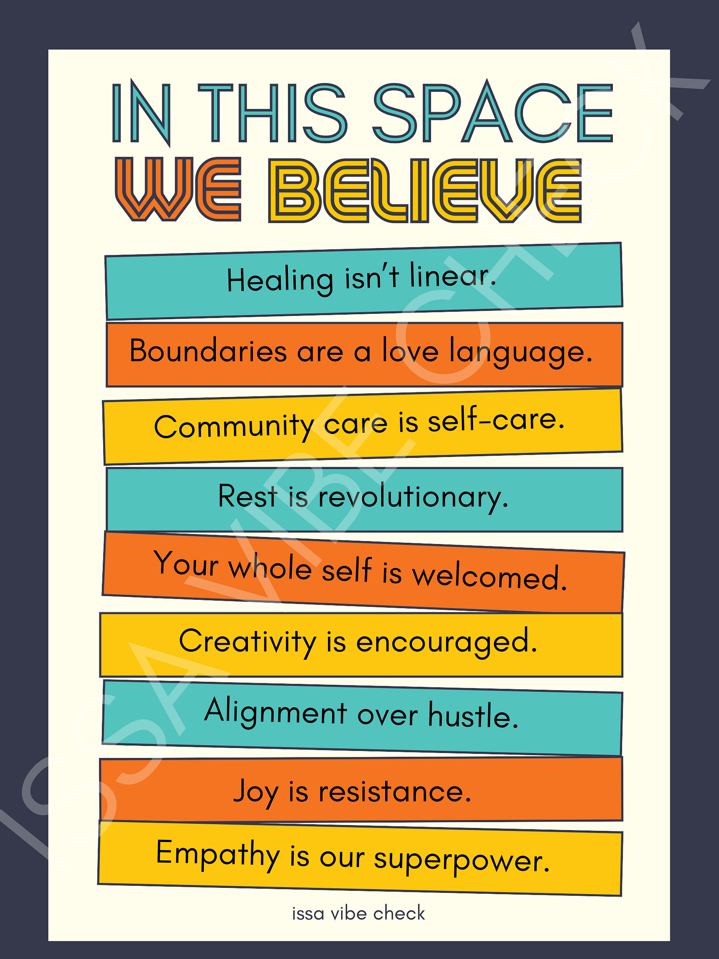 * ‘In This Space We Believe’ poster 8.5X11 and 11X17 posters available at issavibecheck.com